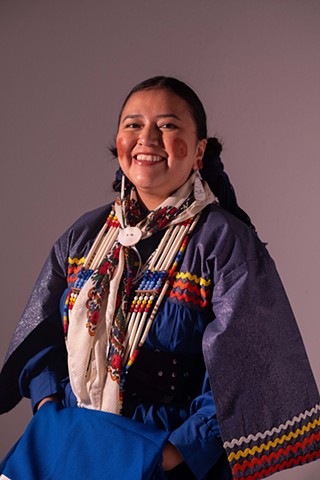 Celia Calabaza is Jicarilla Apache and Santo Domingo (Kewa) Pueblo. An Indigenous artist from Dulce, New Mexico, located on the Jicarilla Apache reservation. She is currently attending the Institute Of American Indian Arts, located in Santa Fe, New Mexico, where she will be pursuing her Bachelor of Fine Arts in Studio Arts with an emphasis in Painting and Associate of Fine Arts in Indigenous Liberal Studies. Respectively, Calabaza is a recipient of the Brenda Julian Fine Arts Scholarship, Norman TeCube Sr. Scholarship, and the Career Pathway Scholarship. Calabaza’s artwork bridges the realms of painting, drawing, and digital work. She expresses a deep connection to her cultural background, traditional knowledge, revitalization of language, and kinship. Her vibrant and intricate pieces reflect her identity and personal journey. She seeks to not only express her own experience, and to serve as a cultural teacher as well. Her vibrant and intricate pieces reflect her identity and personal journey that seeks to illustrate knowledge, teachings, and to serve as a cultural teacher and leader.